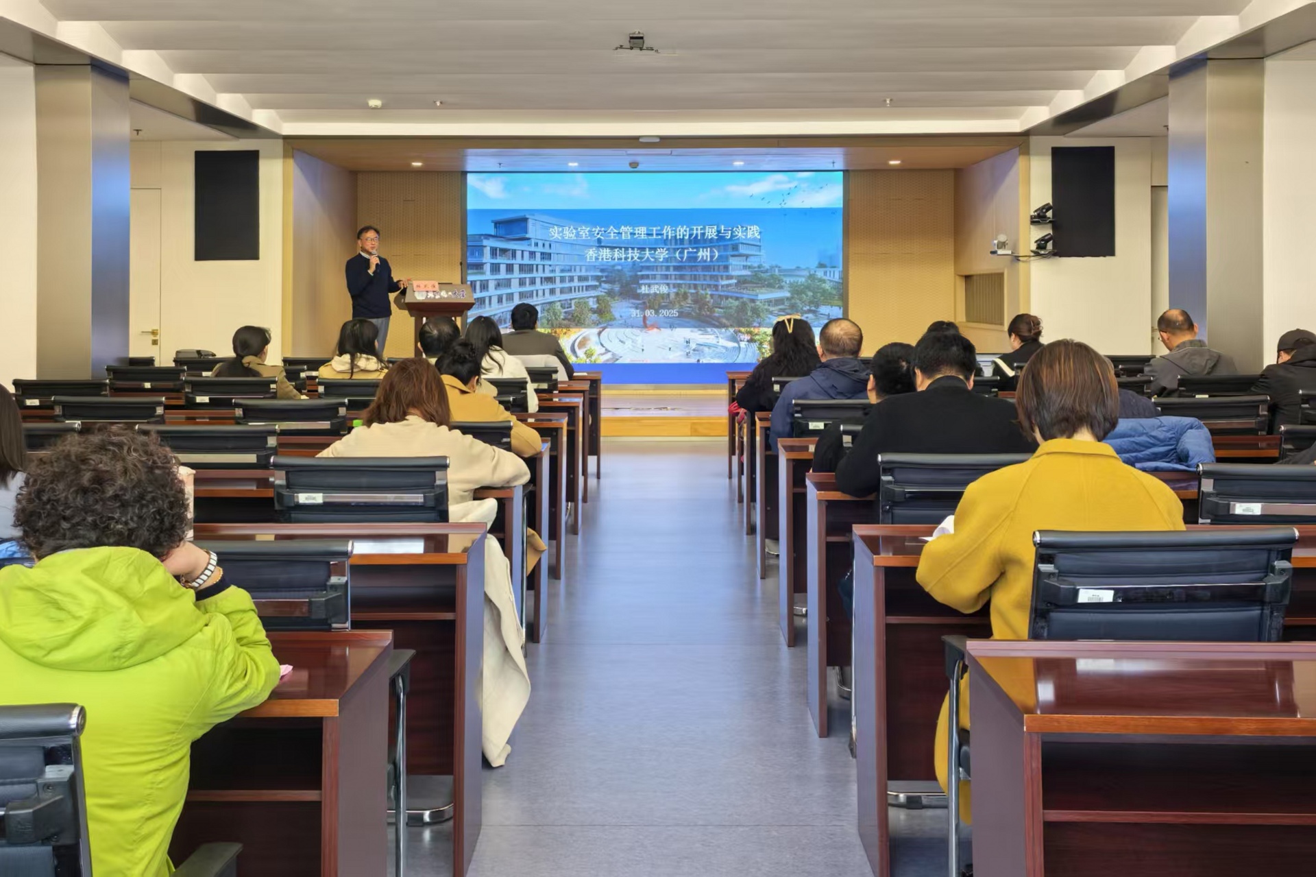 调研期间,杜武俊处长以“实验室安全管理工作的开展与实践-香港科技大学(广州)”为主题,为我校校院两级实验室安全管理人员及安全检查专家作专题培训,分享了香港科技大学(广州)在安全管理体系构建、风险防控机制及文化建设方面的经验。